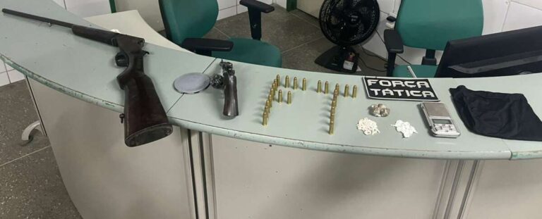 Homem é preso em Aratuba por porte ilegal de arma de fogo e tráfico de drogas