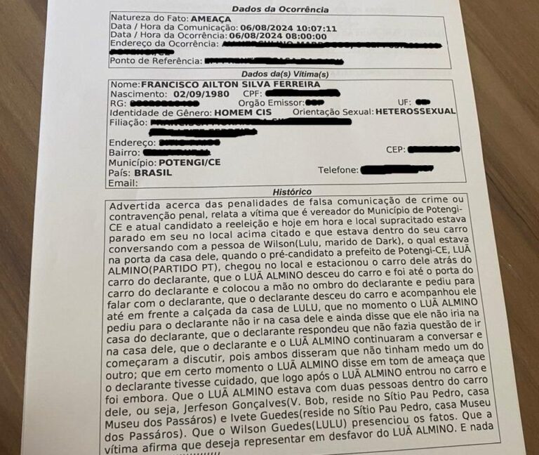 Vereador registra BO contra pré-candidato a prefeito de Potengi