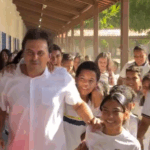 Bruno Gonçalves visita escola e é recebido por dezenas de estudantes em Aquiraz