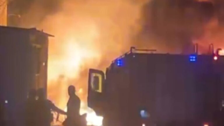Incêndio de grandes proporções atinge fábrica de colchões em Maracanaú