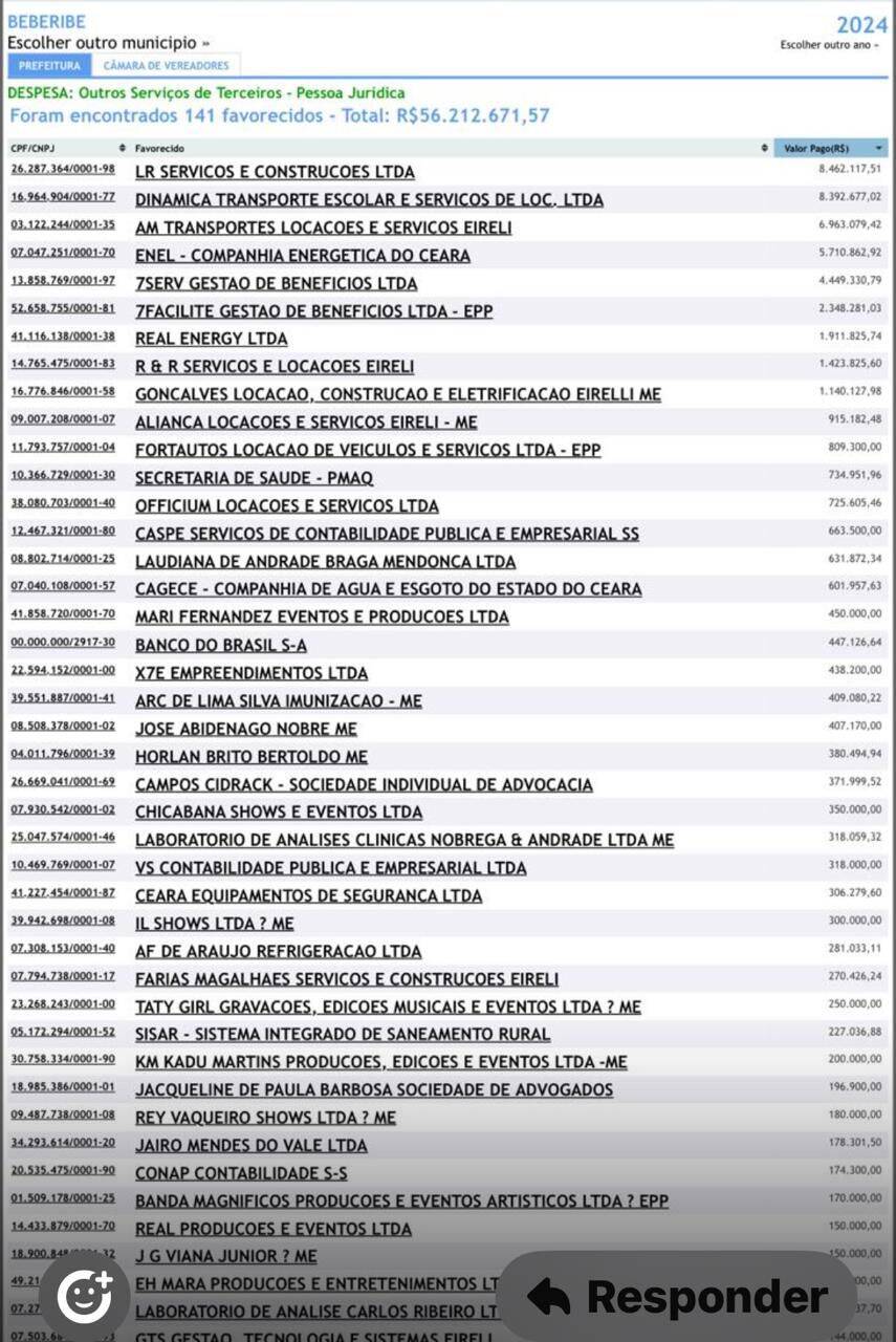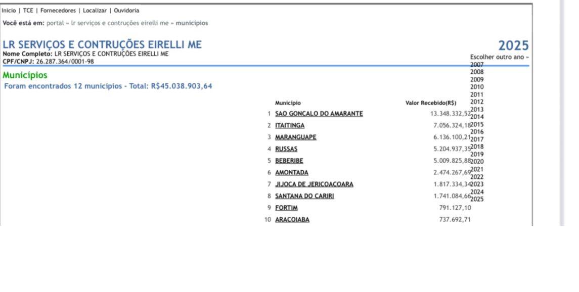 De acordo com informações apuradas, o grupo investigado é suspeito de integrar uma rede de contratos direcionados e sobrepreço em serviços de coleta de lixo. Em Beberibe, por exemplo, a LR Construções faturou R$ 8,4 milhões apenas em 2024.