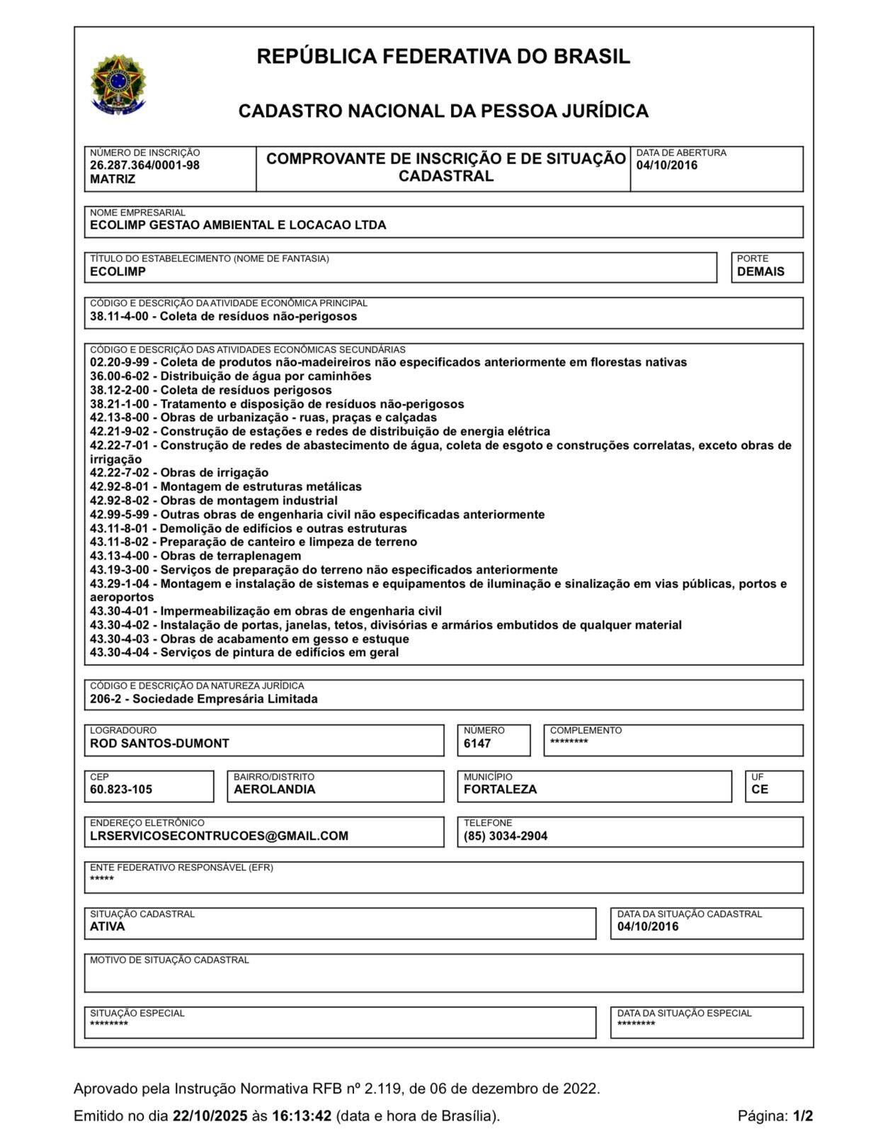 A empresa, originalmente registrada como LR Serviços e Construções, de propriedade de Lucas Rodrigues, apontado como operador de um suposto esquema, passou a utilizar o nome Ecolimp Gestão Ambiental. A sede funciona no bairro Aerolândia, em Fortaleza.