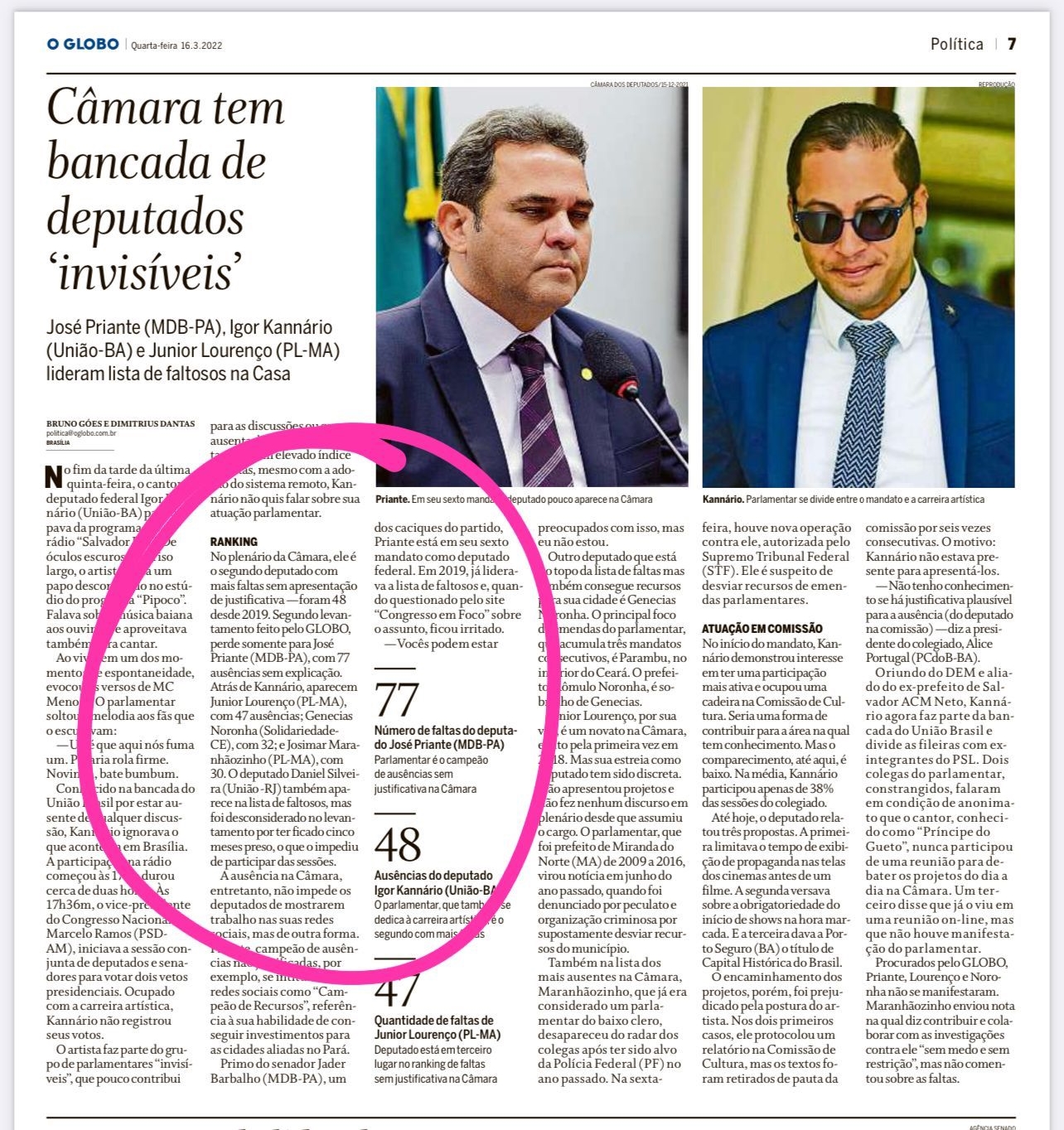 3º) Júnior Lourenço (PL-MA) - 47 faltas