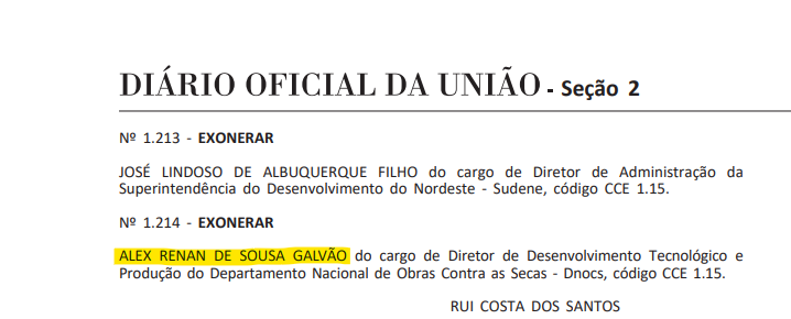 A ministra das Relações Institucionais, Gleisi Hoffmann, iniciou uma série de exonerações de cargos indicados por deputados que votaram contra o governo na Medida Provisória (MP) do Imposto sobre Operações Financeiras (IOF). Entre os atingidos está Alex Renan de Sousa Galvão, exonerado do cargo de diretor de Desenvolvimento Tecnológico e Produção do DNOCS, indicação do deputado federal Moses Rodrigues (União Brasil).