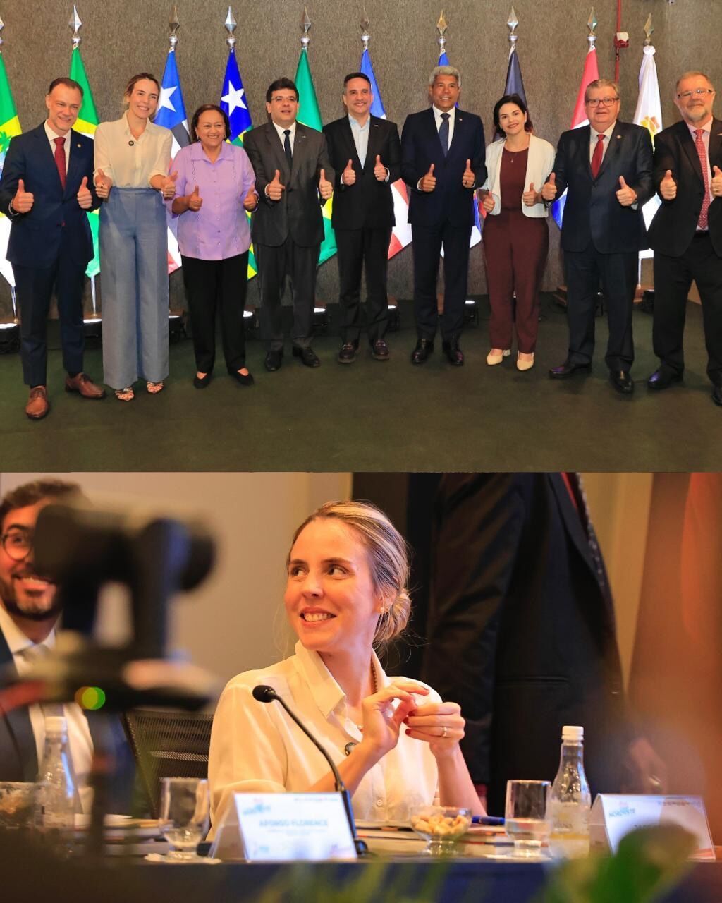 "O estado do Ceará é protagonista na nova indústria do Brasil. Na reunião do Consórcio Nordeste, divulgamos o resultado da Chamada Nordeste, uma seleção de propostas para indústrias na região. O investimento pretendido era de R$ 10 bilhões. Conseguimos a aprovação de 189 propostas e o financiamento de R$ 113 bilhões para a região, o maior financiamento da história da indústria nordestina. O Ceará é o segundo estado com mais propostas aprovadas: são 39 negócios, novos ou em expansão. As propostas são nas áreas de energias renováveis, bioeconomia, descarbonização e hidrogênio verde, data center verde e automotiva, esta com polo agora no nosso Estado. É o Nordeste mostrando que tem bons projetos, tem competitividade e está alinhado com o Governo Federal. Juntos, somos mais fortes!", escreveu a vice-governadora, em publicação nas redes sociais.