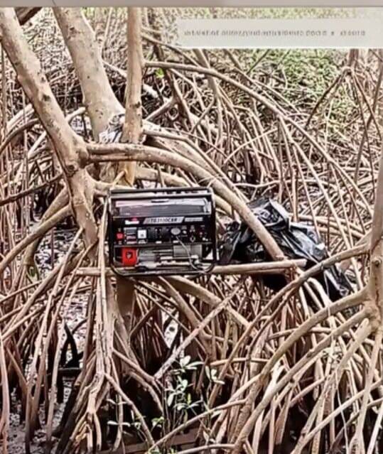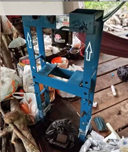 Também foram localizados um rádio comunicador, dinheiro trocado, um pó branco semelhante à cocaína e um gerador de energia — o que indica possíveis atividades noturnas no local.