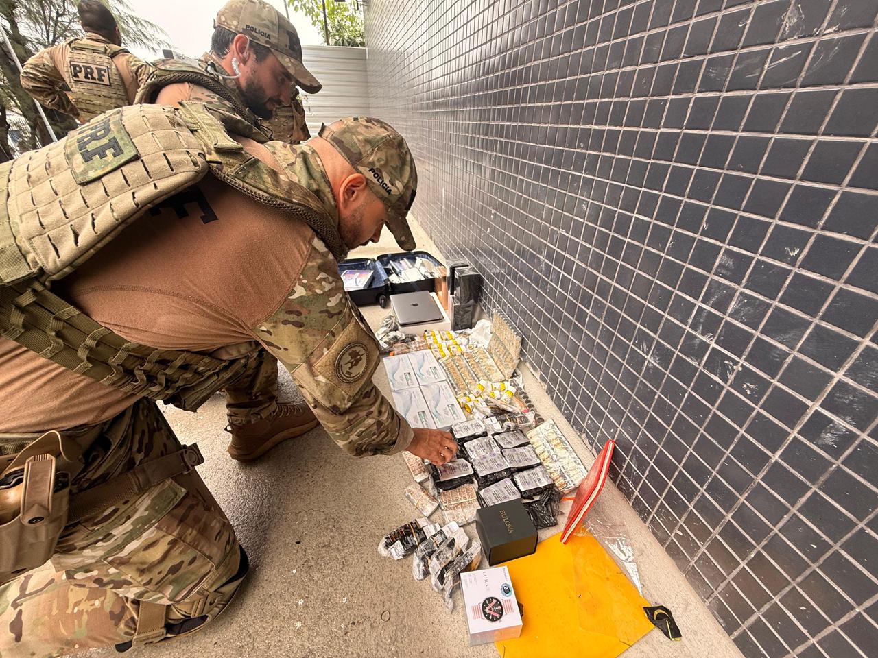 Segundo a PRF, parte dos frascos estava fora das embalagens originais, o que indicaria uma estratégia para facilitar o transporte clandestino e a posterior reorganização dos produtos no destino final, em Fortaleza, simulando mercadorias regulares.