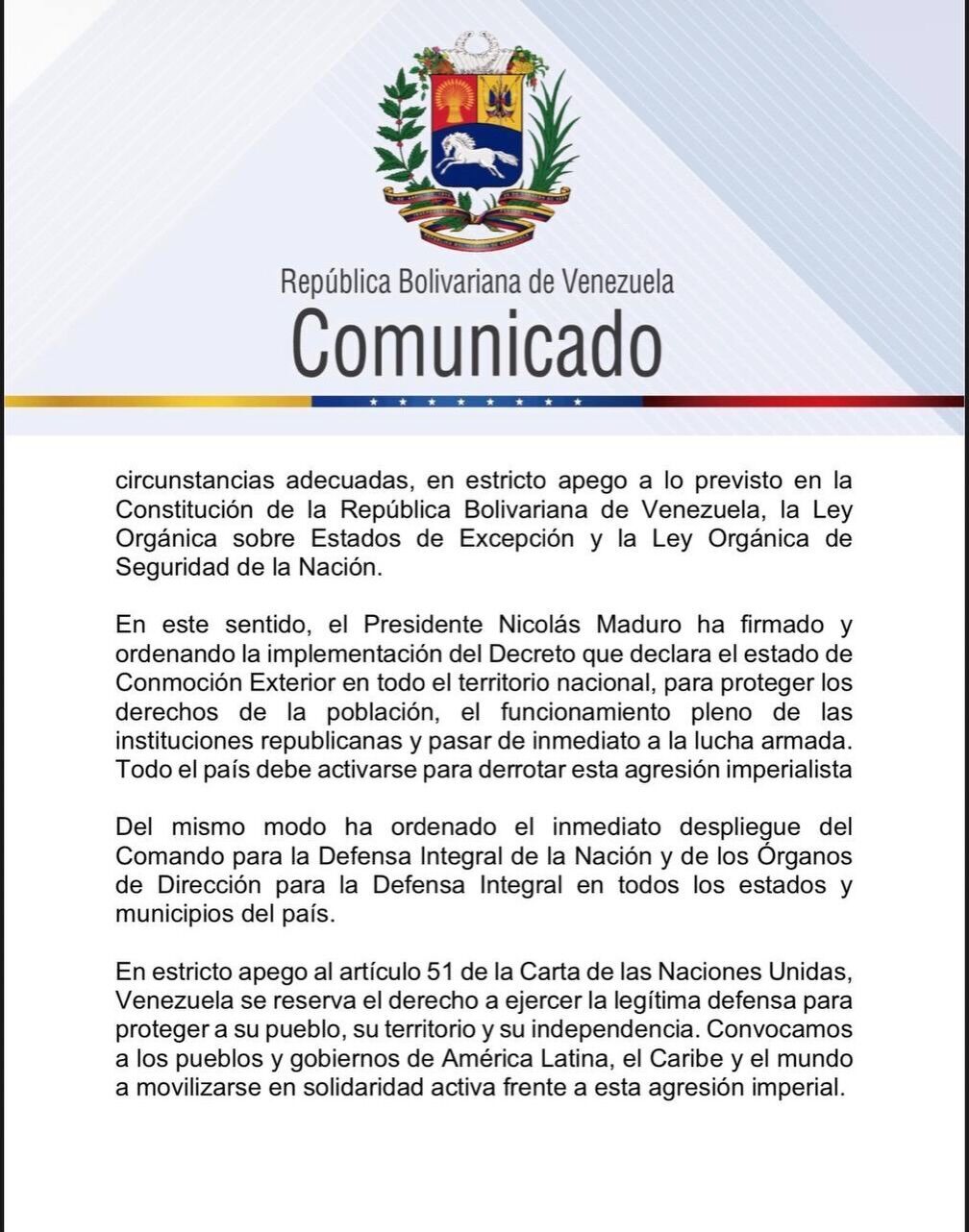 Segundo a vice-presidente, o presidente Maduro já havia alertado a população sobre um possível ataque dessa natureza, que afetaria civis em diversas partes do país. Em resposta à situação, a defesa nacional foi acionada seguindo as instruções do presidente.